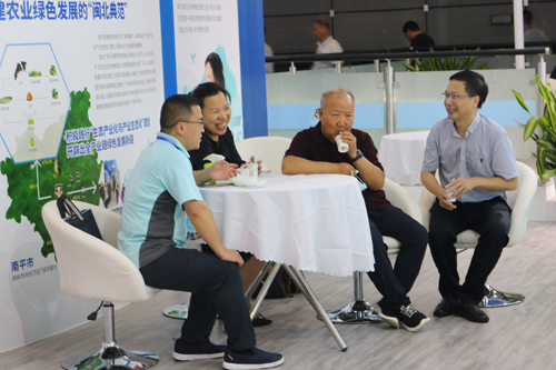 圖為農業農村部副部長馬有祥(中)蒞臨長富展館參觀指導